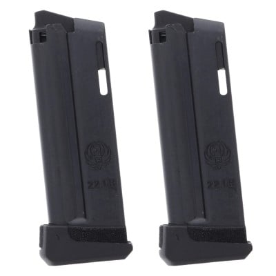 Enjoy more time at the range with fewer reloads using the Ruger® LCP II .22LR 10-Round Magazine 2 Pack. Constructed of durable blued steel, these genuine 10-round magazines offer lasting performance and superior durability. Extended floor plates integrate seamlessly with your Ruger LCP II’s frame for snag-free performance, while simultaneously providing additional grip space for improved comfort and control.