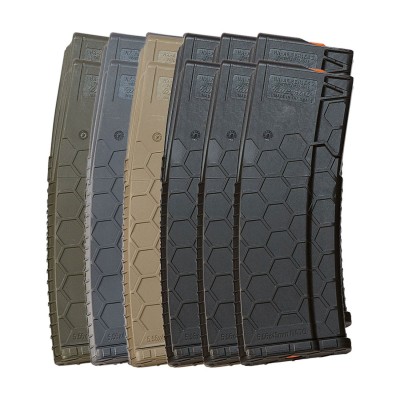 The magazine features the Hexmag® patented Tool-Less Design for fast and easy floorplate removal allowing field cleaning and HexID® color customization. Incorporates popular and functional accessories including Hexmag® Grip Tape and Hexmag® HexID Color Ammunition Identification System.