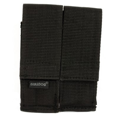 Enjoy superior firepower in any personal defense or tactical scenario with the Bulldog Cases® Double Magazine Pouch from GunMag Warehouse. Featuring a heavy-duty nylon shell with a reliable hook-and-loop closure, this mag pouch readily carries 2 single- or double-stack pistol magazines for quick access and lightning-fast reloads when your life depends on it. Better yet, this magazine pouch features an integrated belt loop for improved comfort and secure carry. Compatible with right- and left-handed shooters. Imported.