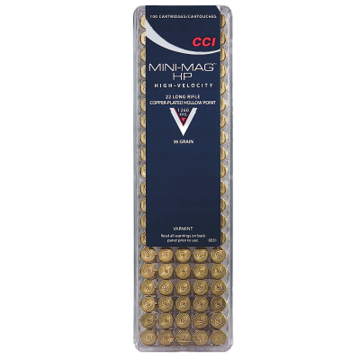 Specifically engineered for small-game hunting and varmint dispatch applications, CCI® Varmint Mini-Mag .22 LR 36gr CPHP ammunition features copper-plated hollow-point bullets and clean-burning powders, loaded in premium brass casings for unmatched reliability and superior accuracy. Better yet, this bulk hunting ammo offers superior firepower at a low, affordable price. 100 rounds.