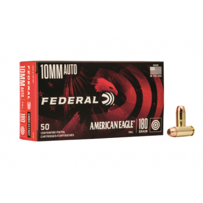Invest in quality with Federal® American Eagle® 10mm Auto 180gr FMJ ammunition from GunMag Warehouse. Designed around hand-selected powders and propellants, this centerfire pistol ammunition offers superior accuracy and consistent, clean-burning performance at an affordable price. Better yet, this target and training ammunition features premium primers and components and quality Federal FMJ bullets, loaded in premium brass casings for quality performance and butter-smooth operation in virtually any semi-auto firearm chambered in 10mm Auto.