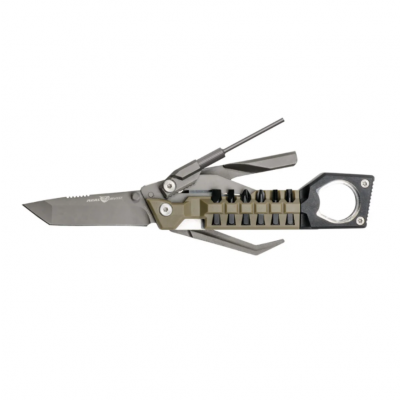 A must-have for every shooter, the Real Avid® Pistol Tool features a strong stainless steel frame with durable G-10 handles for a reliable, non-slip grip, while the compact design easily fits in a pistol magazine pouch for superior versatility in the field. The 3” tanto blade knife allows you to cut through ammo boxes, cleaning patches, and paracord, and the tap hammer surface allows you to punch through stubborn pins and parts. The carbon scraper and detachable pick quickly remove jam-causing carbon buildup and other obstructions. The removable pin punch allows you to quickly remove even the most stubborn pins, while an 8-32-threaded receiver bit is readily compatible with standard cleaning bits and jags for quick field maintenance. The 3-position locking bit driver readily accepts any of the included 10 bits (1/16” Allen, .05” Allen, .035” Allen, .028” Allen, #1 Phillips, #2 Phillips, 3/16” flat, 1/8” flat, 3/32” hex, and T15 Torx). Other tools include a 1911 barrel bushing tools and a metal file.