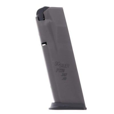 These factory magazines are constructed from durable stainless steel with a special anti-friction coating, along with capacity for twelve hard-hitting rounds of .40 S&W/.357 Sig. Built to the same rigorous quality standards as the mag that came with your gun, Sig Sauer factory magazines help ensure reliable feeding and flawless function from your P228/P229 pistol.