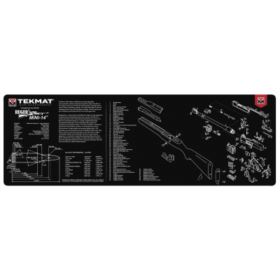 Protect your workspace and firearm from accidental damage during cleaning and maintenance with the TekMat® Long Gun Cleaning Mat Ruger® Mini 14. This cleaning mat boasts a water-, oil-, and stain-resistant thermoplastic fiber top layer with a heat-transferred schematic graphic for a quick, visual reference. Plus, the vulcanized, non-slip rubber backing keeps the mat from sliding around, while stitched edging protects against curling, fraying, tears, and more for enhanced durability and lasting performance you can depend on. Machine wash.