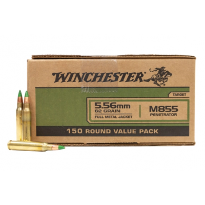 Designed to penetrate thick barriers and armored targets, Winchester® 5.56x45mm 62gr Green Tip ammo is an ultrareliable target round, favored by law enforcement and military personnel across the country. This bulk target ammo features clean-burning powders, premium primers and components, and green-tipped LAP bullets, loaded in premium brass casings for exceptional accuracy in virtually any environment.