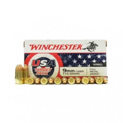 Winchester USA 9mm 115gr FMJ Target Pack 100-Round Box